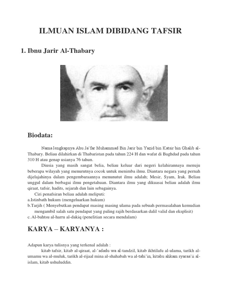 Ilmuan Islam Dibidang Tafsir: 1. Ibnu Jarir Al-Thabary