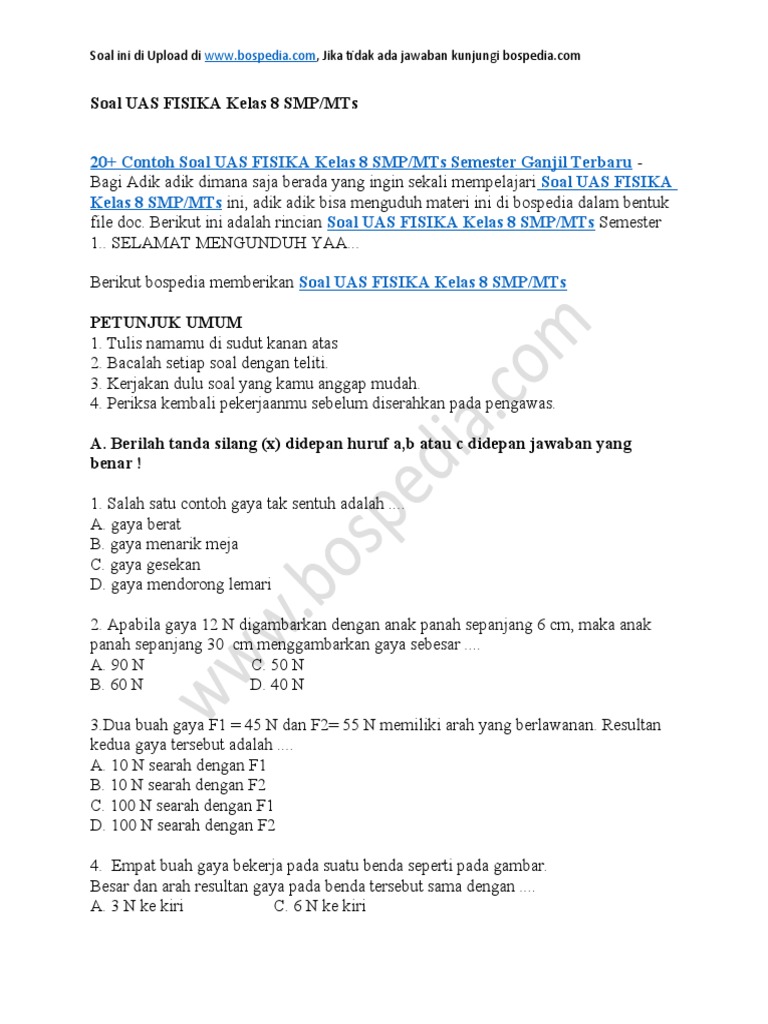 20+ Contoh Soal Uas Fisika Kelas 8 Smp/Mts Semester Ganjil Terbaru Soal Uas Fisika Kelas 8 Smp/Mts Soal Uas Fisika Kelas 8 Smp/Mts