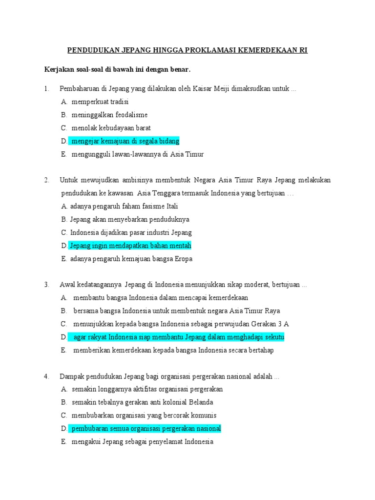 SOAL PENDUDUKAN JEPANG HINGGA PROKLAMASI KEMERDEKAAN RI