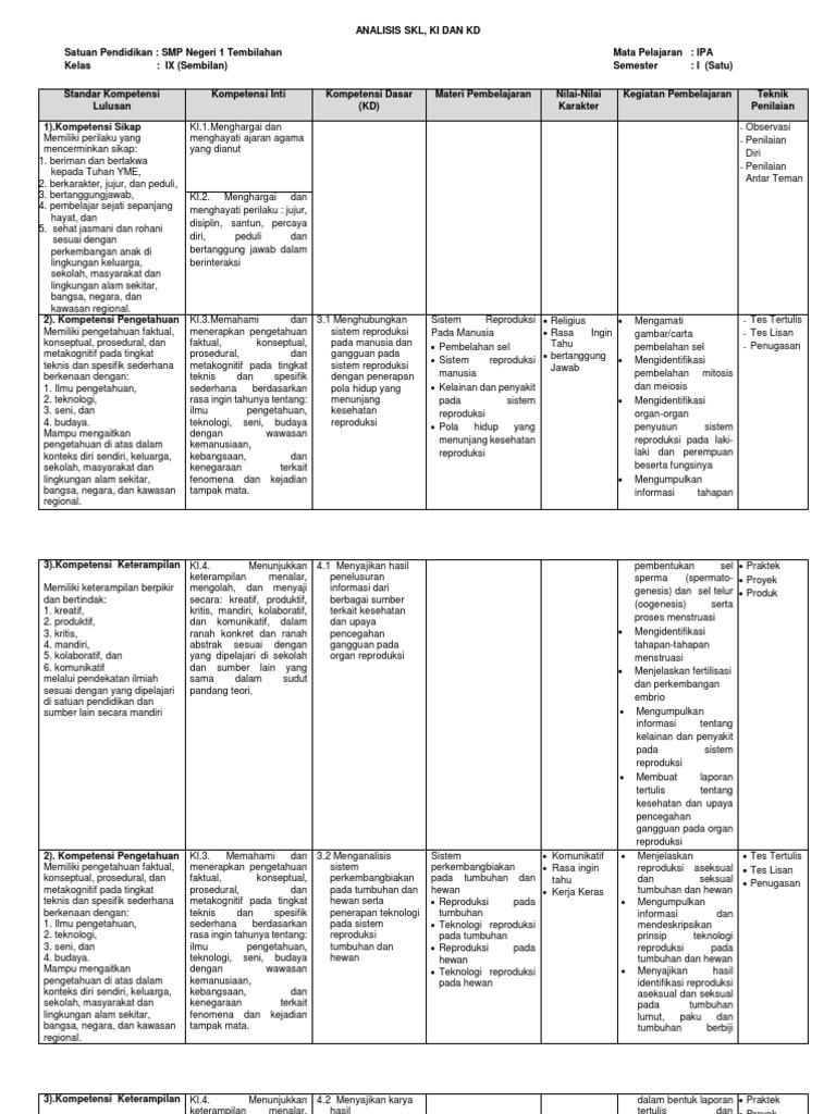 Silabus IPA Kelas 9 Semester 1 Kurikulum 2013 Revisi 2019 …